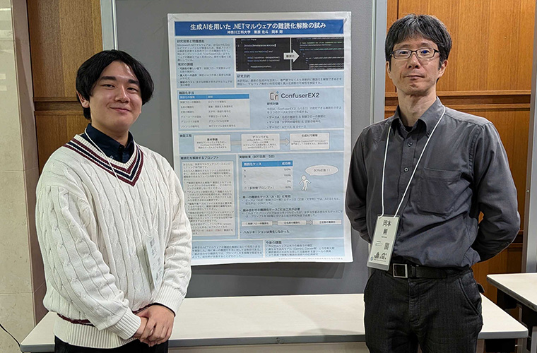 岡本研究室の最大の特徴は、サイバー攻撃の後追いを良しとしないスタンスにある。 セキュリティ業界は、常に攻撃者が先行し、防御側がそれを追いかけるいたちごっこの歴史だった。岡本先生はこの現状を変えるべく、攻撃者の論理を自ら実践し、その脅威をあぶり出す手法をとっている。 象徴的な取り組みが、古いウイルスの蘇生研究だ。20年前のウイルスは通常、現代の対策ソフトで容易に検知できる。 しかし、岡本先生は「もし攻撃者が、古いウイルスの構造を現代の64ビット環境へと変換したらどうなるか」という問いを立てた。 実験の結果は衝撃的だった。蘇ったウイルスの約4割が、最新の検知網をすり抜けてしまったのだ。 「誰もやっていないからこそ、そこに先手を打つ価値があるんです」。この鋭い洞察こそが、原理原則を突き詰める岡本流の研究スタイルである。 ただし、この研究は一歩間違えれば攻撃の手助けと誤解されかねない。だからこそ、ウイルス対策メーカーと密に連携し、倫理的な配慮を尽くすことが求められる。 高度な技術と強い倫理性、その両輪があって初めて、社会を守る攻めの研究が成立するのだ。