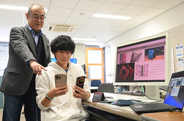 脇田研究室では、学会などの外部に研究成果を発表する機会を積極的に設けている。 「企業活動も、ユーザーや社会に受け入れられることが重要です。学会発表を通して、自分の研究の価値をわかりやすく伝え、 評価される経験を積んでほしいのです」と話す脇田先生。長く自動車メーカーで活躍してきた先生ならではの視点と言える。ストーリーの立て方や資料の作り方、 プレゼンテーションの練習など指導にも余念はなく、学生たちが学会で受賞するなど、成果は着実に表れてきている。 外部からの評価は学生の自信となり、研究テーマに対する責任や愛着につながる。責任や愛着を持つと、指示されずとも自ら学ぶようになる。 自信は成長の原動力となるのだ。「成長サイクルが回り始めたら、私の仕事もほとんど終わったようなもの。 あとは学生の興味や熱意に誠心誠意応えていくだけです」と先生は微笑んだ。