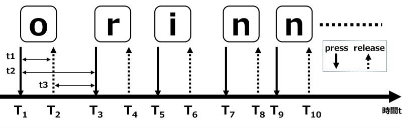 キーを押してから次のキーを押すまでの時間、つまりタイピングの「リズム」も個人の重要な癖となります。この手法単体での認証成功率は約63%でした。最も個性が際立ち識別しやすかったのは、意図的に「速く」あるいは「ゆっくり」打った時ではなく、長年の習慣として染み付いた「普通に」打った時のリズムでした。さらに、安定したリズムだけでなく、「リズムの乱れ方」が他人には真似のできない特徴となり得ることが示唆されました。