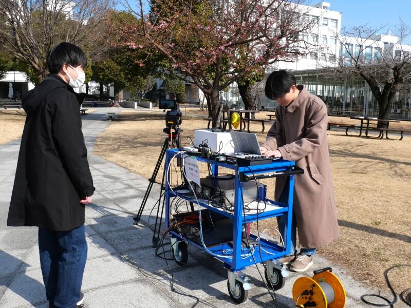 図4:神奈川工科大学での河津桜8K撮影の様子